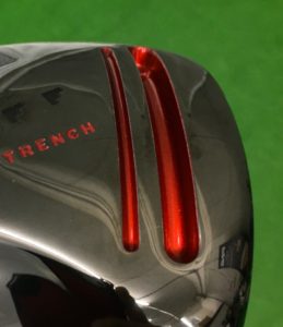 「パワートレンチ」と呼ぶ溝(トレンチ)が、ソール側に2本、クラウン側に1本ある。この溝は、テーラーメイドやタイトリスト等々多くのクラブメーカーに採用され、ソール側に1本あるだけで、かなりの効果がある。これが上下に合計3本あるから、なるほど、感心します。