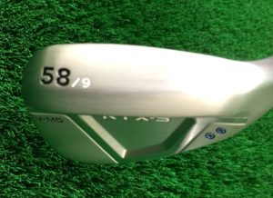 今回の試打はスタンダードバウンスタイプをチョイスした。バックフェースの「V-MG」と右端の◉◉がミッドバウンス(スタンダード)の表記。(ハイバウンス「V-FG」◉◉◉、ローバウンス「V-LG」◉)