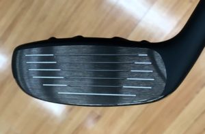 構えると、クラウン部の凸凹が、ボールがフェースのセンターでヒット出来そうな心理的効果がある。フェースがややグースっぽい(オフセット寄り)ので、捕まえてくれそうな顔です。