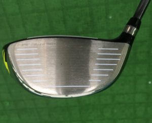 構えた感じは、やさしくてつかまりそうな印象です。フェースを見ると、TOUR B シリーズ共通のパワーミーリングという細い溝が彫られている。これにより、安定したスピン性能で飛ばすことができる。