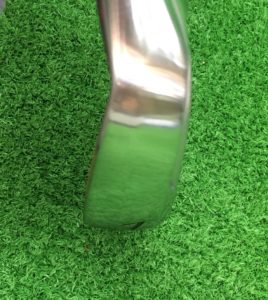 リーディングエッジが極端に丸くラウンドしている。これならつま先上がりやつま先下がりのライで芝に引っかかりにくい。