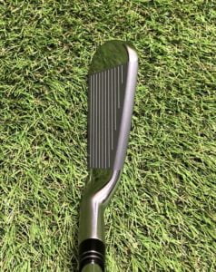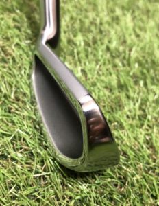 番手表示よりもロフトが1番手ストロングで、そこに1〜2番手長いシャフトが挿入されている。だからと言って5番アイアンのような難しさがない。なぜか7番アイアンを打つ感覚で振り抜けるのです。