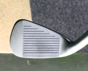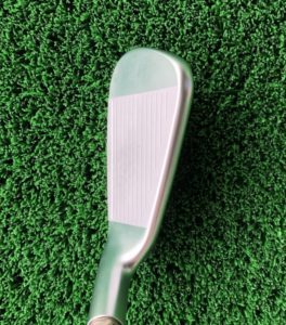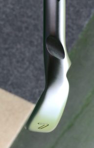前モデルや「G400 アイアン」にはフェース面のトゥ寄りに番手表示が刻まれていますが、それが消えている。。。